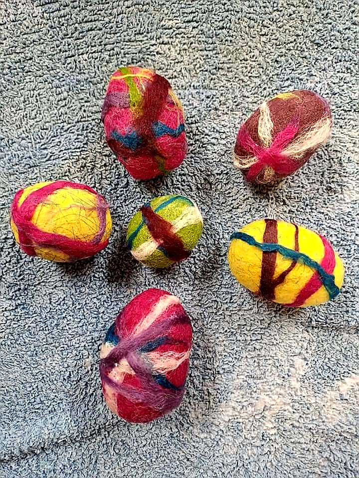 We werken in de klas uitsluitend met natuurlijke materialen. Zowel voor de decoratie als het knutselmateriaal gebruiken wij hout, katoen, wol, bijenwas, natuurlijke verf, ... Hierdoor wordt de tastzin en motoriek van de kinderen verder gestimuleerd.